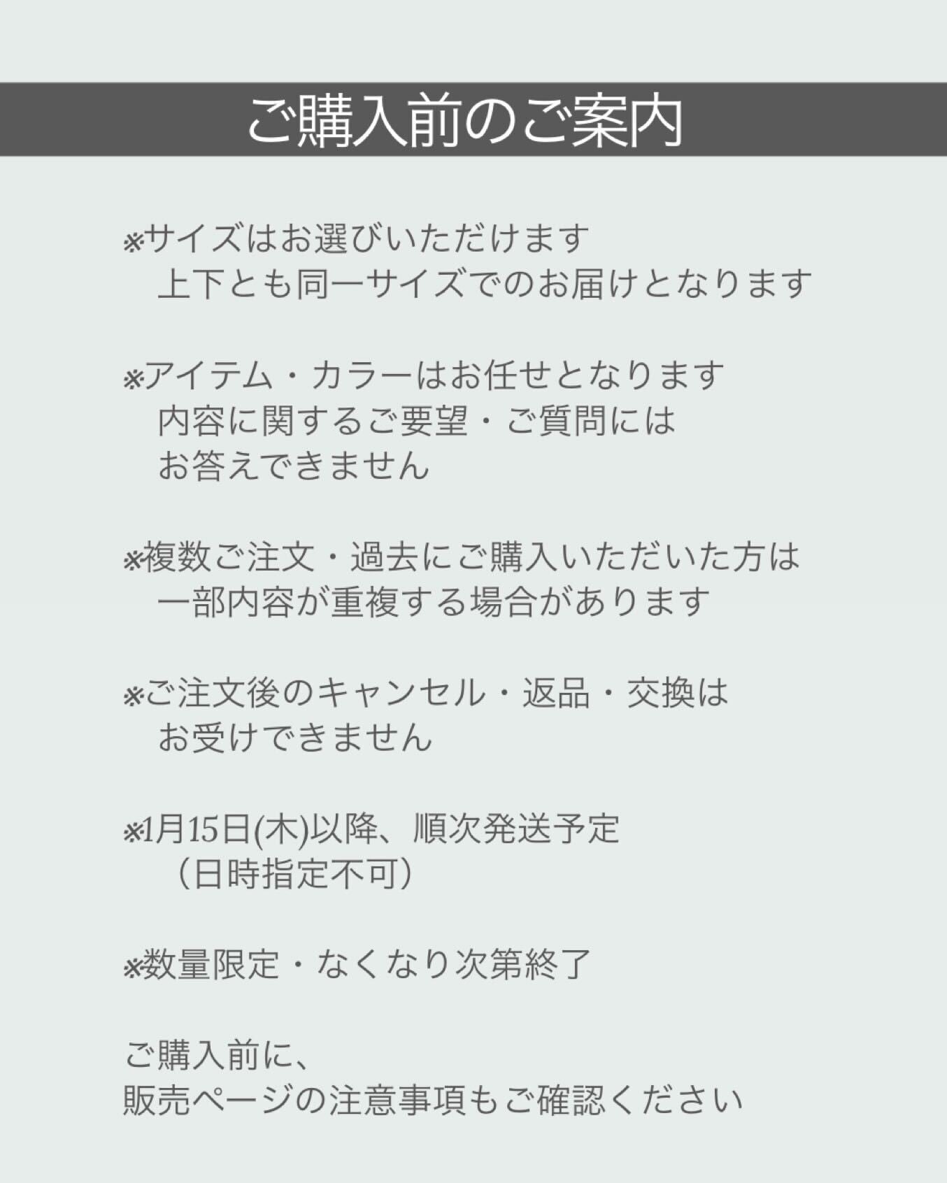 ※アイテムやカラーのご指定は承ることができません。